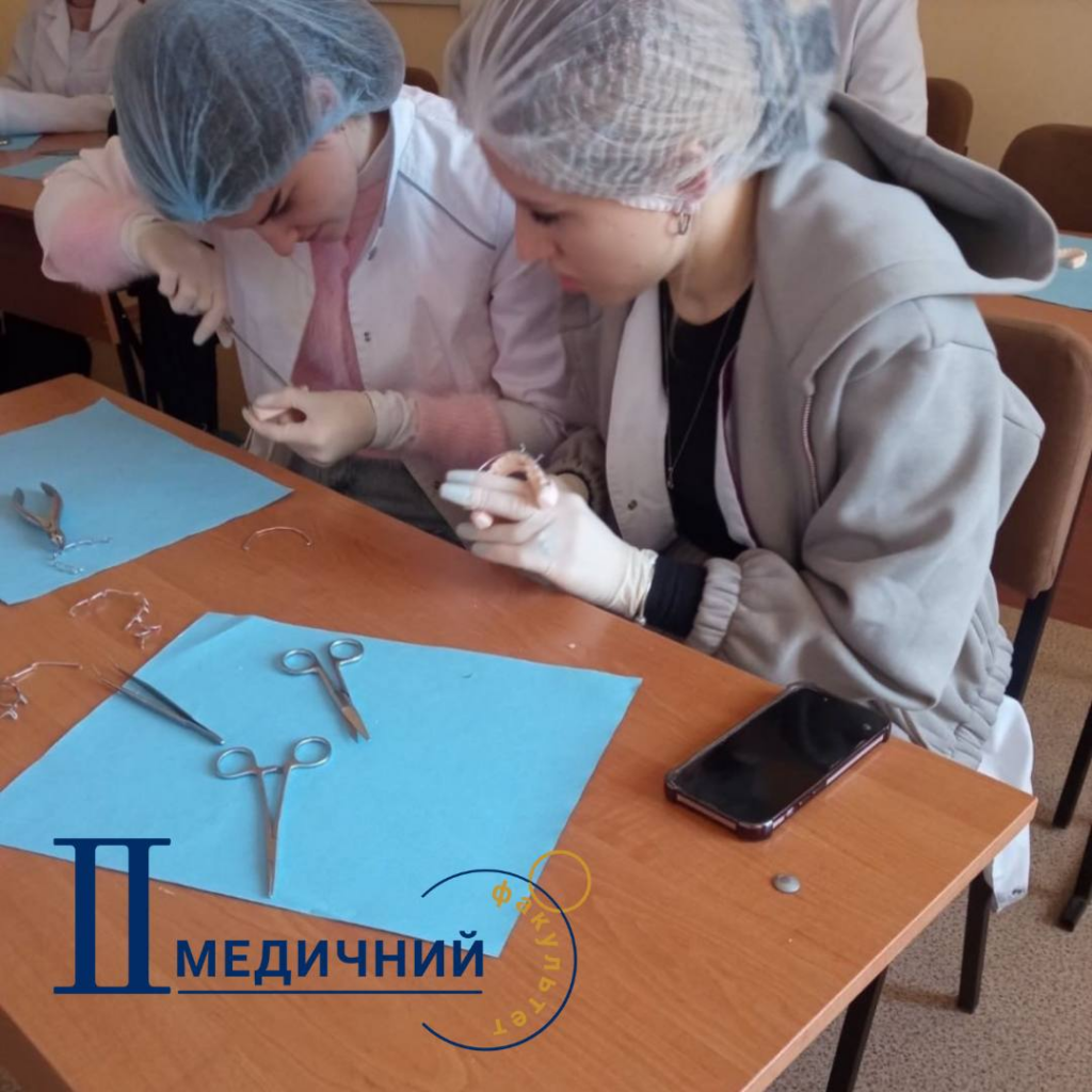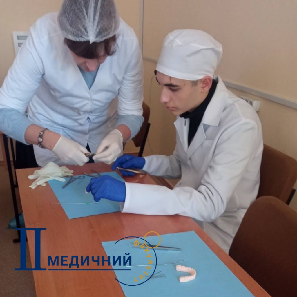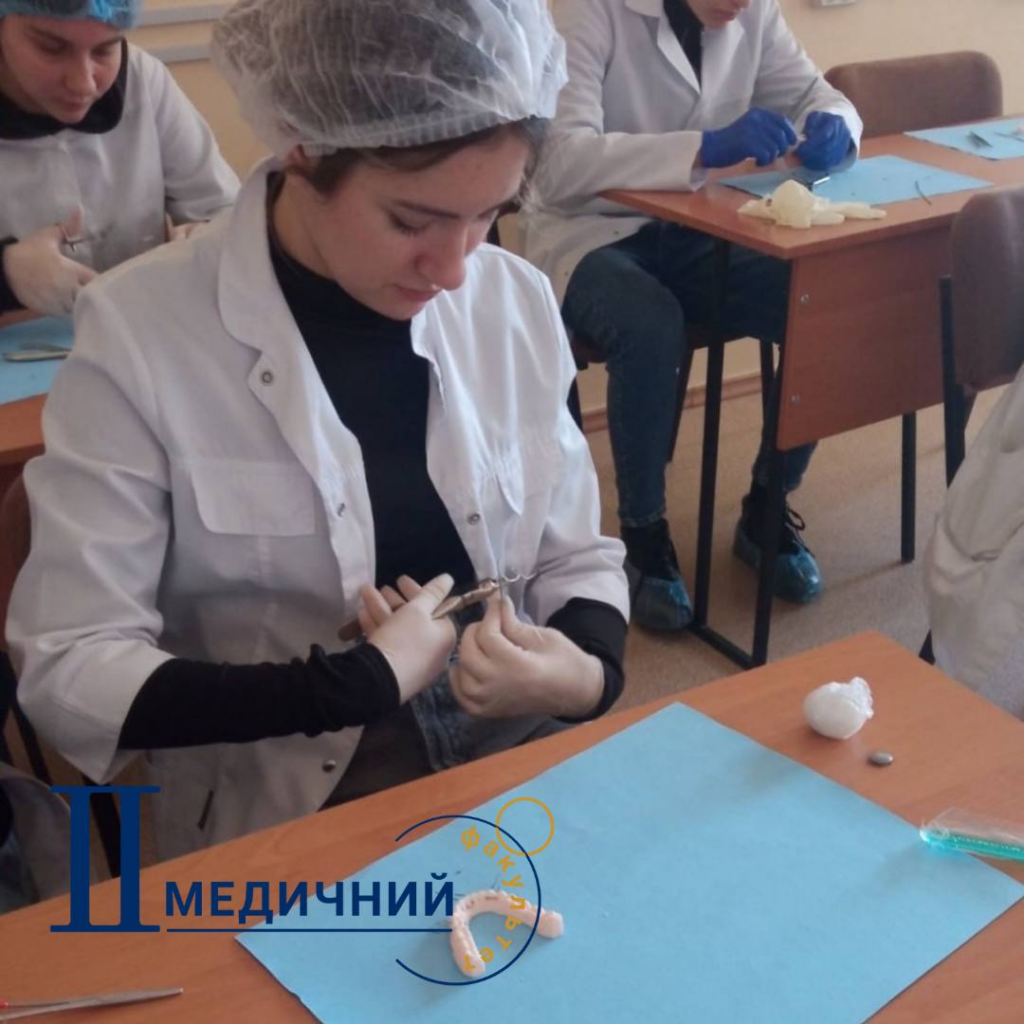 На практичному занятті, в тому числі, були відпрацьовані навички припасування та фіксації дротяної шини металевими лігатурами на моделях щелеп, а всі отримані знання та практичні навички студентами обов’язково стануть в нагоді при навчанні на старших курсах та під час самостійної клінічної практики!